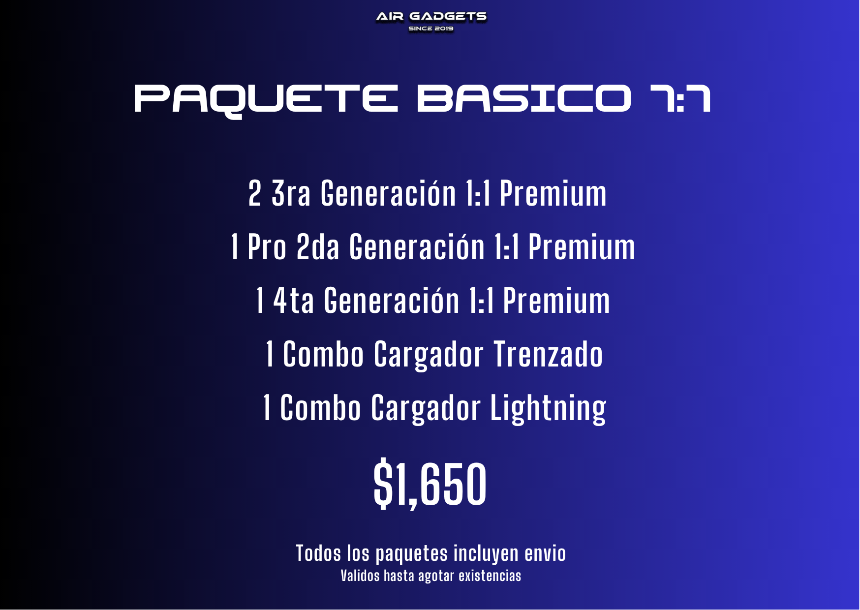 Este paquete incluye la calidad mas alta de audífonos, la 1:1 Premium, ideal para los que quieren ofrecer lo mas acercado a unos originales.