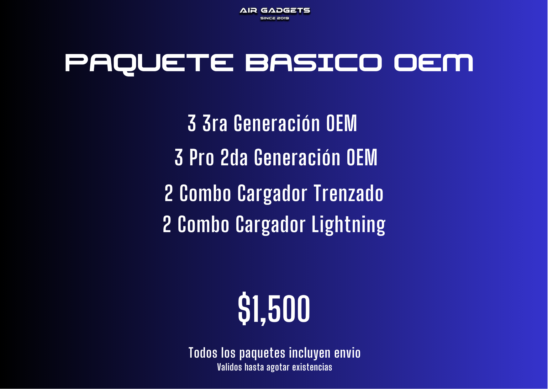 Este paquete incluye la calidad OEM de AirPods, ideal para iniciar con bajo presupuesto sin dejar de lado la calidad de tus accesorios.